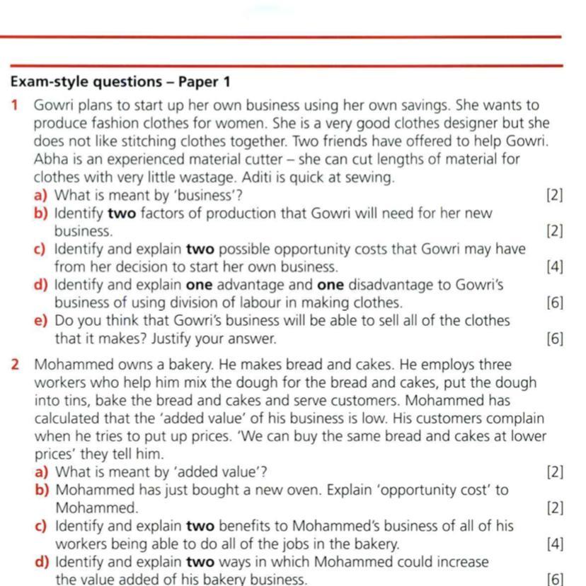 - Exam-style questions - Paper 1 1 Gowri plans to start up her own business using her own savings. She wants to produce fashion