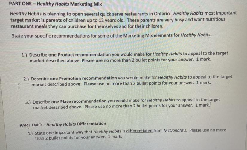 Before opening a restaurant chain in Ontario, Healthy Habits must develop a strategic plan for products and services that meet the desires and needs of its target audience, which as specified above are parents of children 12 and under.