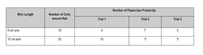 Here, we are required to predict the number of paperclips that will be picked-up in trial 2 and trial 3 for the 10cm wire and also provide evidence from the investigation to support the answer.