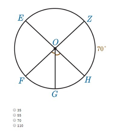 Since the measure of angles on a circle is 360 degrees, so the measure of angle EOZ and FOH will be equal to 360 degrees minus 140 (2*70) degrees.