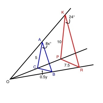 CAB° = PKR° (note: angles in a similar triangle are equal)