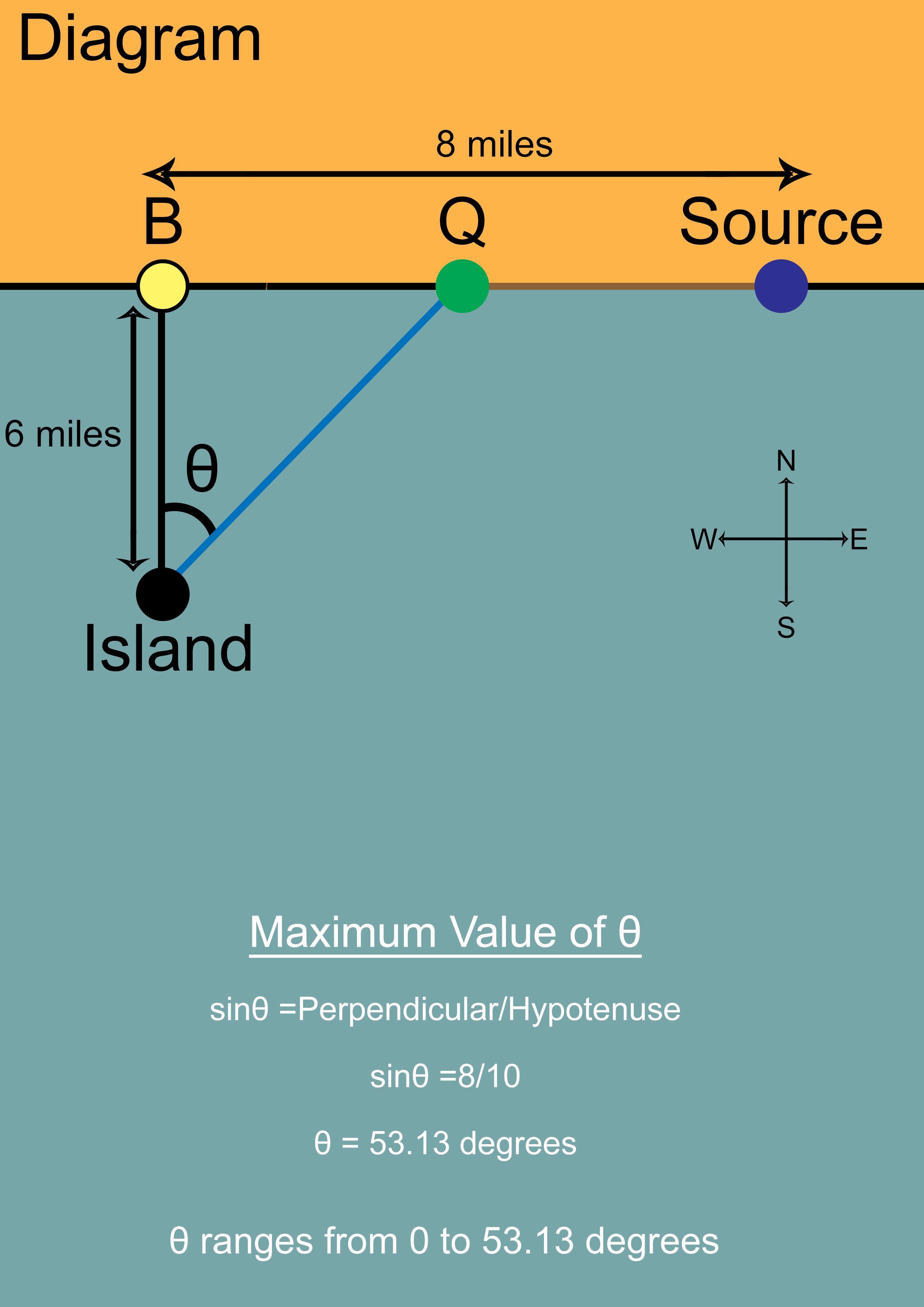 The value of θ varies from 0 degrees to 53.13 degrees as per the diagram.
