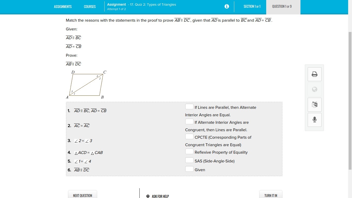 By alternate interior Angles, if the alternate interior angles are congruent then the lines are congruent.
