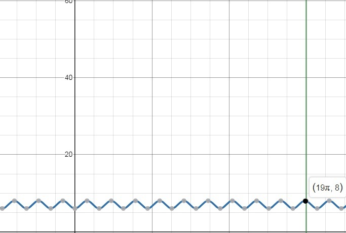 Graph the function y = –cos(x) + 7 and explain how to find the number of times the gum returns to the wall as it travels a dista