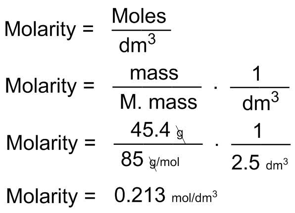 Solutions are made up of two non reacting species called solute and solvent. The amount of solute in solvent is known as concentration of that solute. Concentration is often measured in Molarity. Molarity is the amount of solute dissolved in 1 dm3 of solution. Answer to your question is as follow;