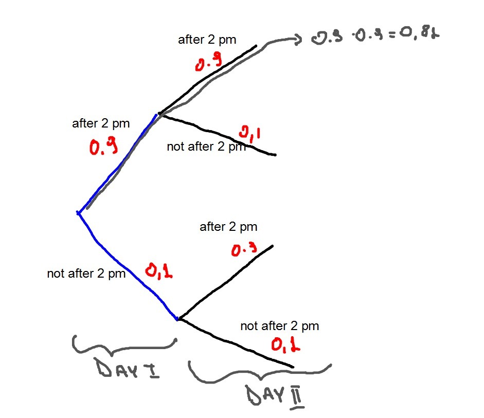 At the end of tomorrow, inventory of 5+20 pallets will have been used to fill orders for 2+10 pallets. That leaves inventory on hand of