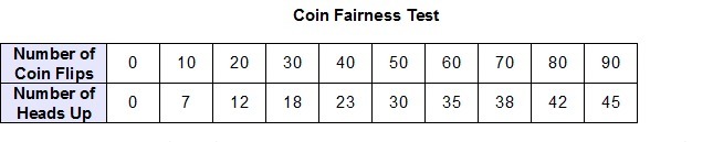 Given : Lydia runs an experiment to determine if a coin is fair by counting the number of times a coin lands heads up. The table shows her data.