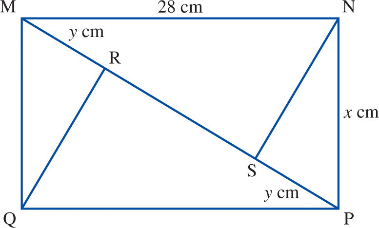 The area of the rectangle MNPQ is 588 cm^2.