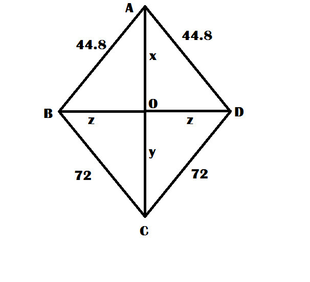 Perpendicular bisect the diagonal BD into equal parts let it be z.