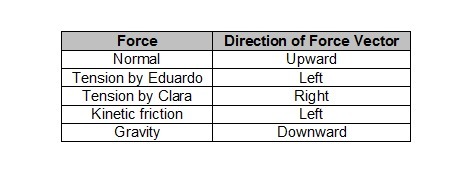 E = 500 N, the force applied by Eduardo, horizontally to the left.