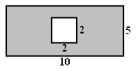 First, find the area of the shaded region plus the white region, which is 5*10, or 50. Now find the white region only, which is 2*2, or 4. Now subtract 4 from 50 to get the area of the shaded region only. You will get 46. So 46 is your answer.