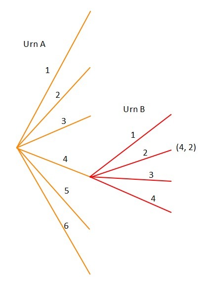 <h3>Urn B has balls numbered 1 through 4 → Total = 4 balls</h3>