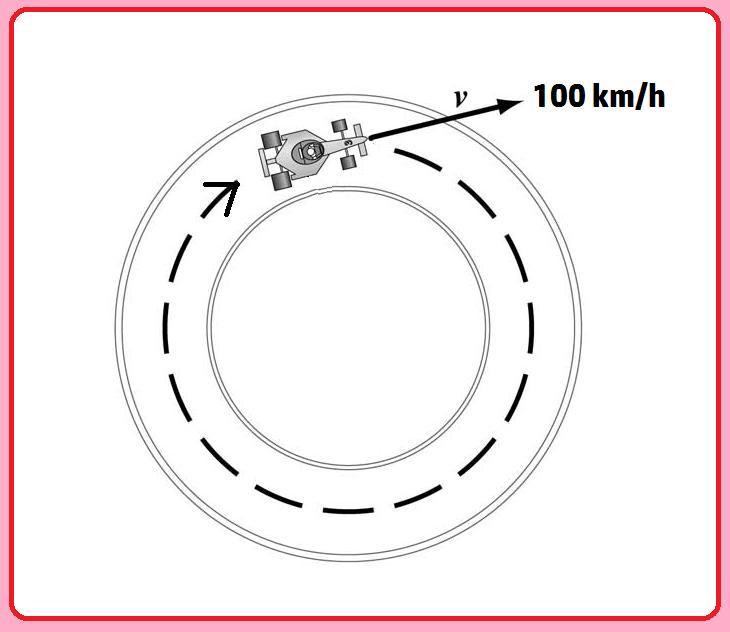 Since the circumference of the track is equal to the distance traveled by the car, the car returns to its starting point.