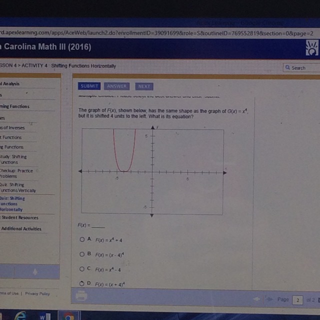 It is given that G(x) shifted four units left. It means a=4 and b=0.
