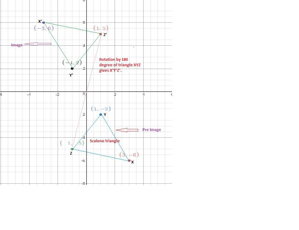 Vertices of Triangle X' Y' Z' →→ Image : X'(-3,6),Y'(-1,2),Z'(1,5)