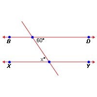 In the given figure,  BD is parallel to XY and also it is given that the angle made by BD with the transversal line in the interior side is 60°