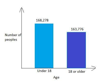The bar diagram is shown below. Number of peoples who are 18 or older is 163,776.