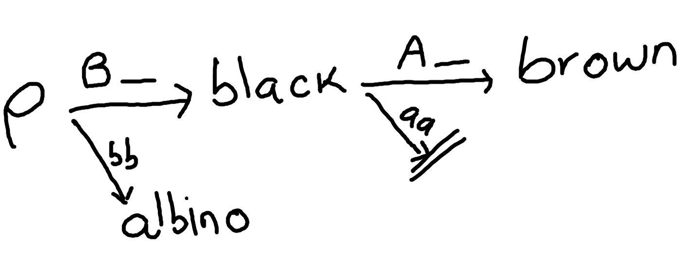 - If the genotype is aa: black pigment is not converted and mouse remains black