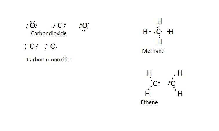 Electron dot structure of methane and ethene are given in an image
