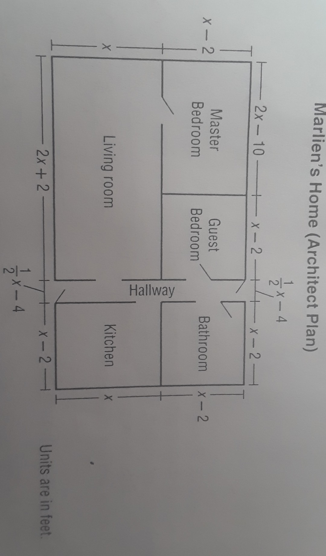Or we can add Master bedroom,guest room, hallway and bathroom, to find the length of Marlien's home.