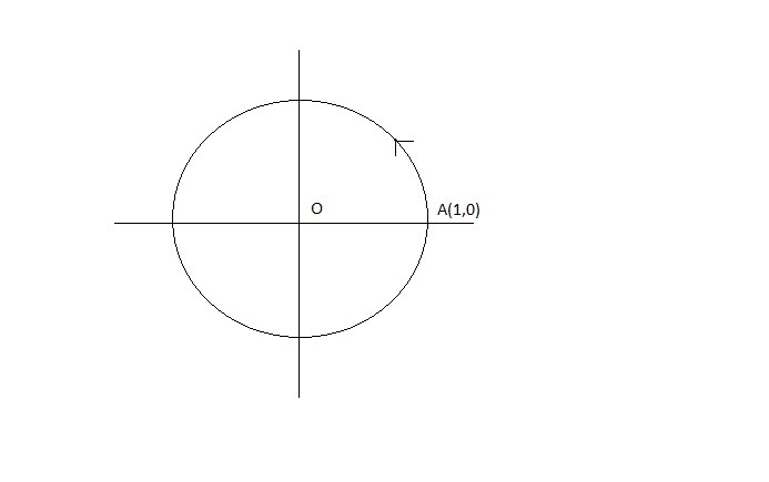 Given an ant is sitting on the perimeter of the unit circle at the point (1,0). If the ant travels a distance of