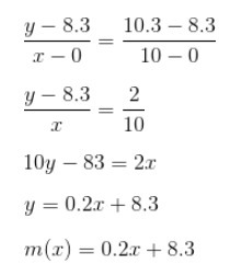 substituting x to the derived equation below, we have m = 0.2*30 + 8.3, the answer is 14.3 Million