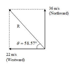 Since the velocity components are in the west direction and the north direction, they are perpendicular to each other. The magnitude of the actual velocity vector can be determined as resultant of the two components that are perpendicular to each other.