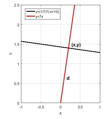 The minimum distance from the origin to this line is provided by a straight line that passes through the origin and which is perpendicular to the straight line.
