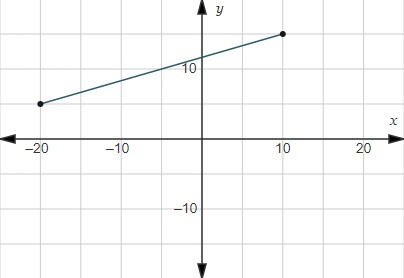 Step 1: find the slope of the given line segment. We have the two end points (10, 15) and (-20, 5), so the slope is m=(15-5)/(10-(-20))=1/3