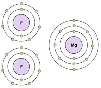 These diagrams show two atoms of fluorine and an atom of magnesium.