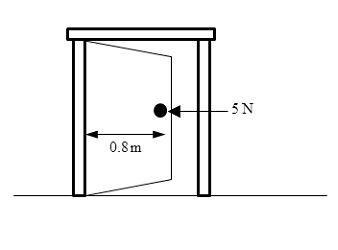 Since the force is applied perpendicular to the door and the door is hinged at the other end, the force will produce a torque in the door.
