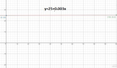 With the use of these coordinates (0,25) and (100,25.3), we plot the below graph.