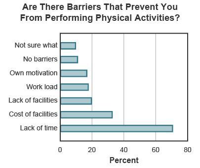 "What would 20 percent of the population report as a barrier for working out? inability to devote thirty minutes a day to working out