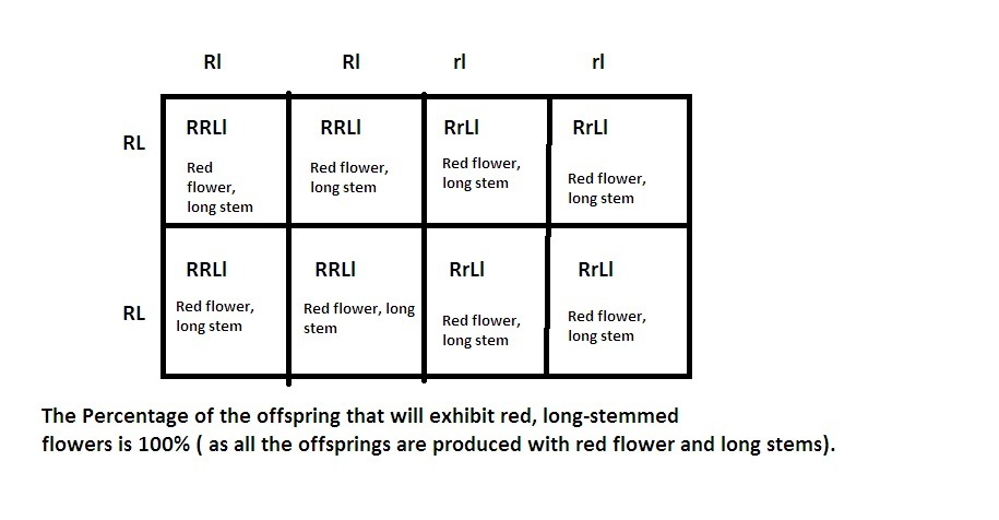 When they are allowed to cross, they will produce 100% offspring that will exhibit red, long-stemmed flowers.