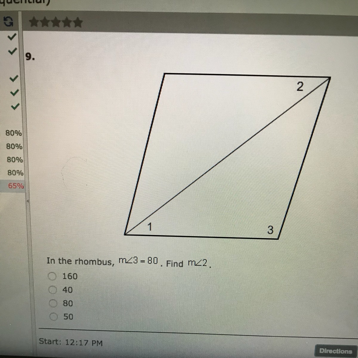 ∠1=∠2 (Alternate angle because opposite line of rhombus is parallel)