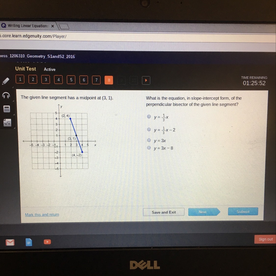 We have been given an image of a line segment and we are asked to find the equation of perpendicular bisector of our given line segment in slope-intercept form.