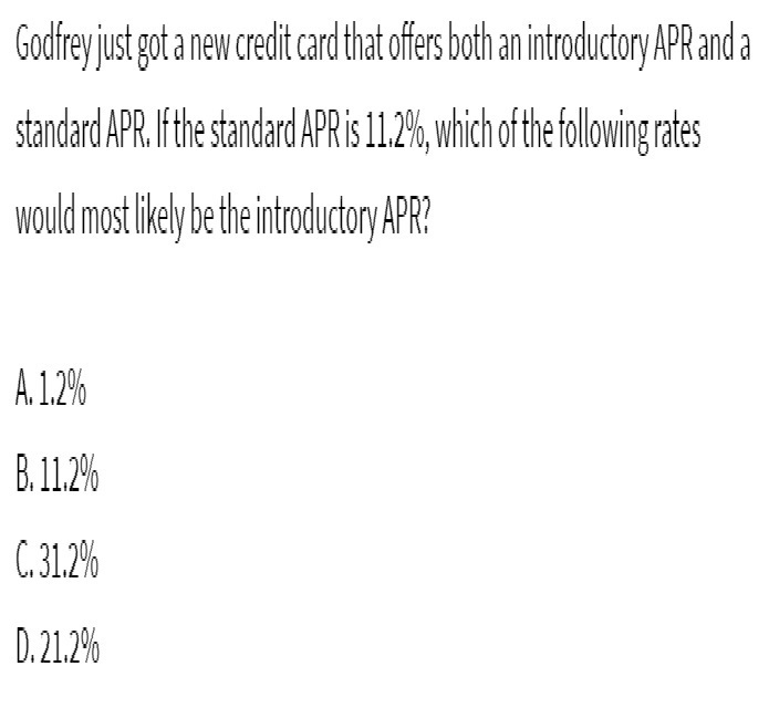 Godfrey just got a new credit card that offers both an introductory APR and a standard APR. If the standard APR is 11.2%, which