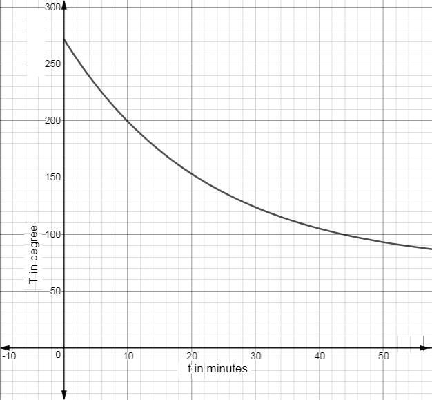 Given: A pizza is taken out of an oven and placed on a counter. The temperature, T, in degrees Fahrenheit, of the pizza after t minutes is modeled by the function,