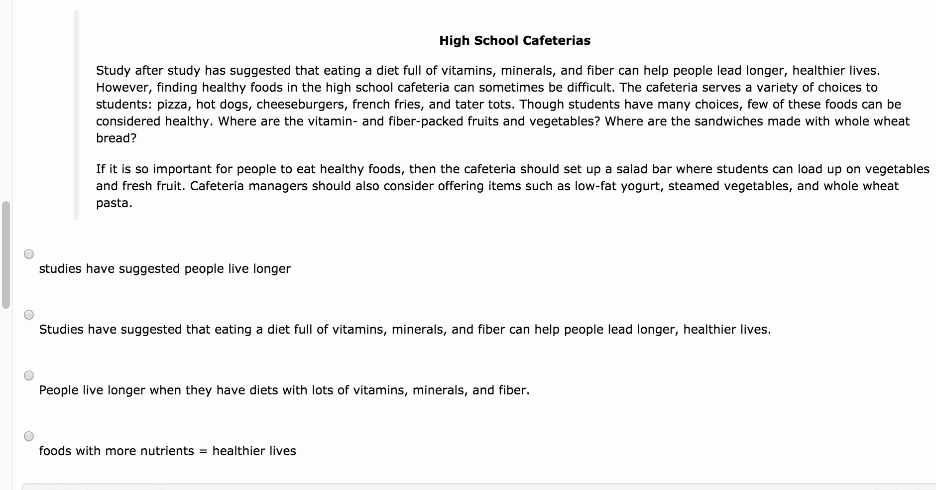 Please help asap! Which is the best example of a note taken for this supporting detail?