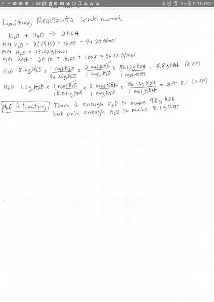 3) The answer is: mass of potassium hydroxide is 8.1 grams.