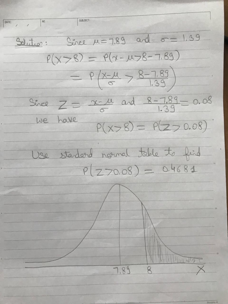 Solving it with a statistical calculator would give