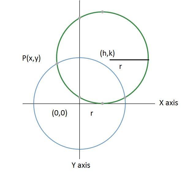 Since, after moving the circle the point P(x,y) is still present in the edge of the new circle,