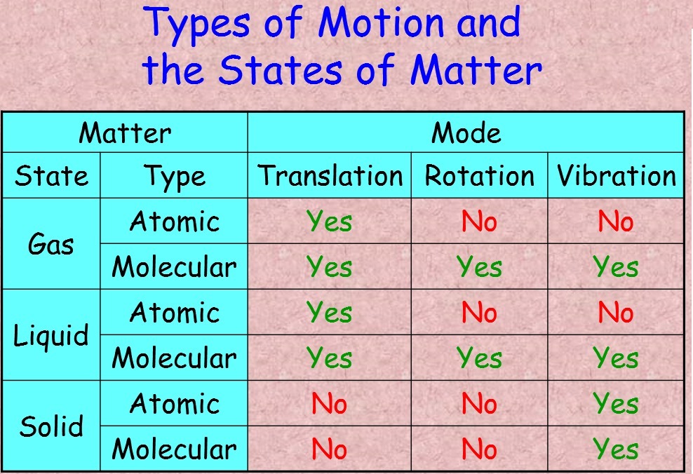 2) Gas : translation, vibration, rotation. The gas molecules are free to rotate, oscillate & vibrate.
