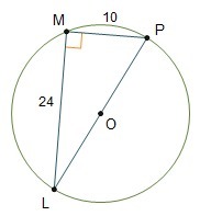 We have been given that line segments MP and ML are perpendicular chords in circle O. MP = 10 and ML = 24.