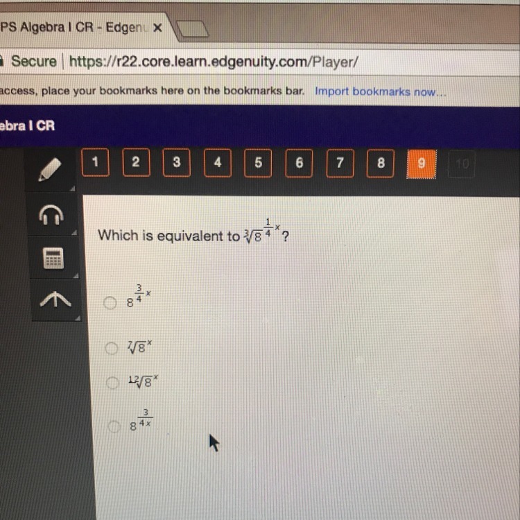 (\sqrt[3]{8})^{\frac{1}{4}x}= 8^{\frac{1}{3}\frac{1}{4}x}=8^{\frac{1}{12}x}=(\sqrt[12]{8})^{x}