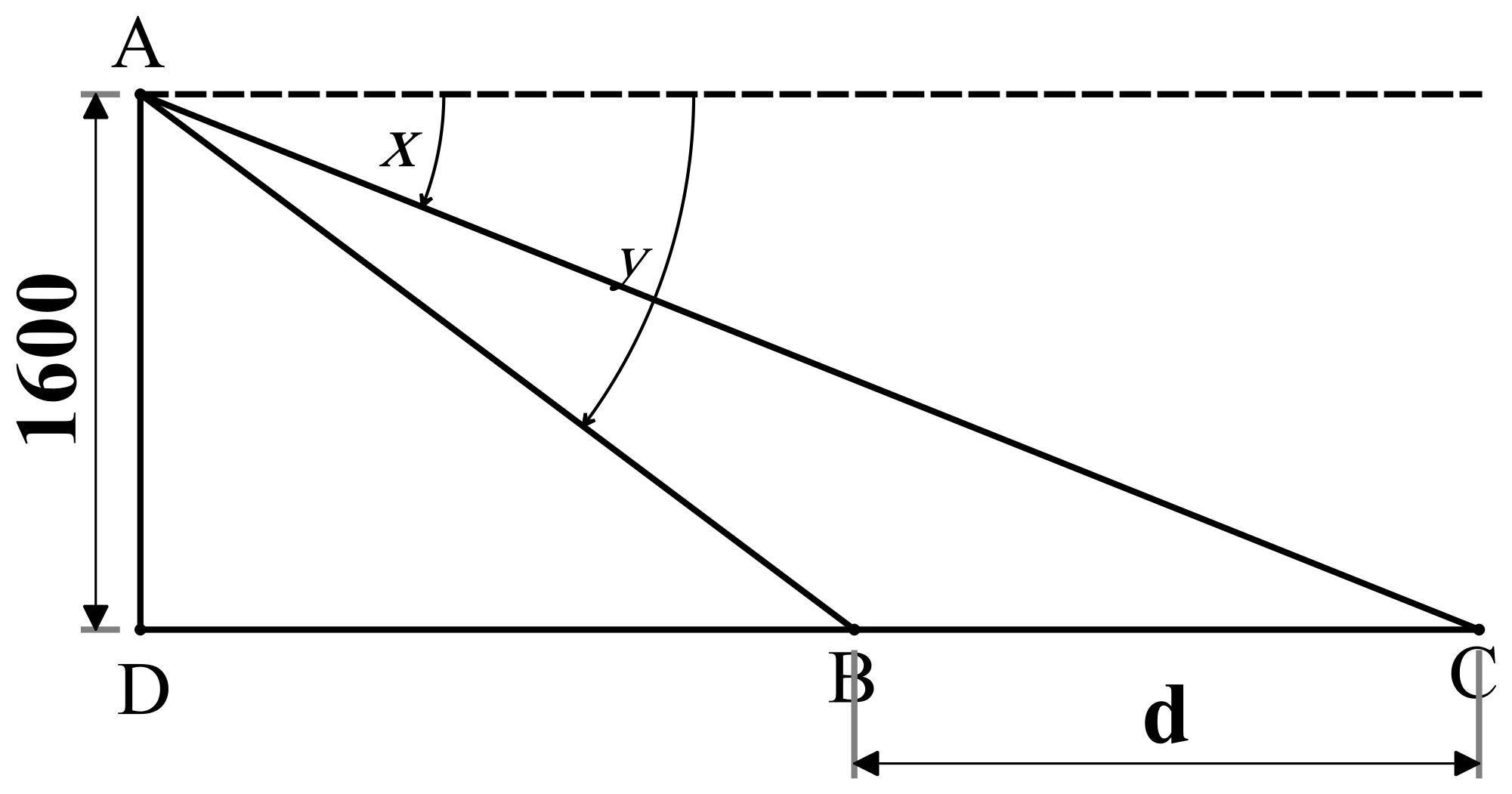 DC = AD * tan (90° - x) = 1600 * tan( 90° - 25.2° )