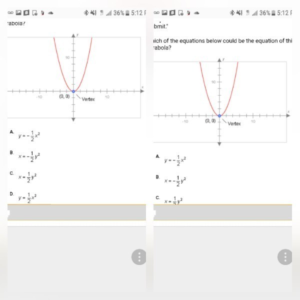 The given parabola opens upward, this means squared term is x with positive co-efficient.