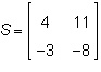 ST=  \left[\begin{array}{cc}4&11\\-3&-8\end{array}\right] \left[\begin{array}{cc}-8&-11\\3&4\end{array}\right]  \\  \\