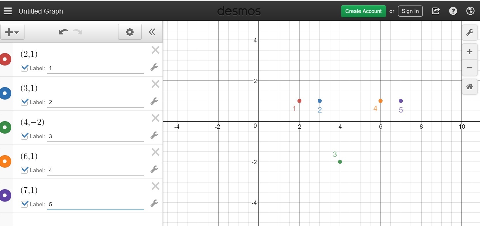 </span>(2,1) (3,1) (4,-2) (6,1) (7,1)