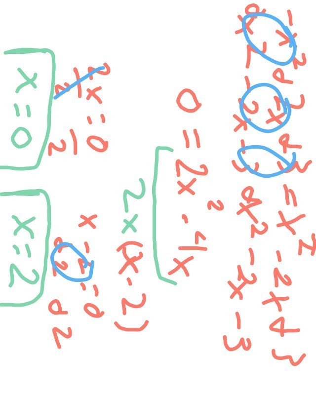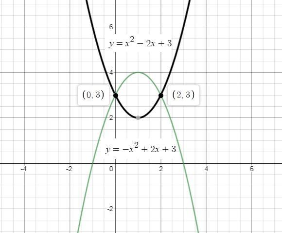 would be 0 and 2 ( x-coordinates of the intersected points )